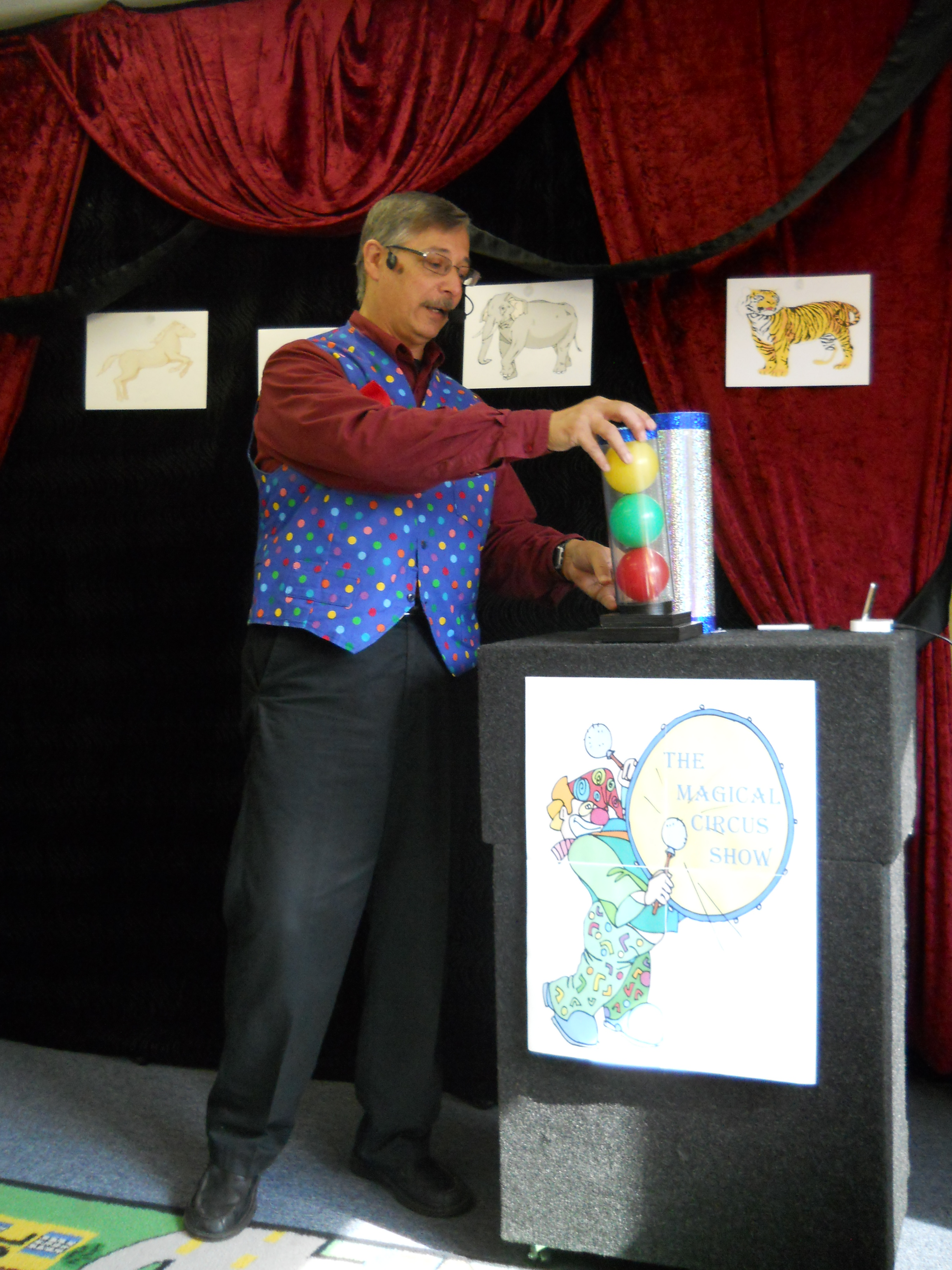 Let’s take a trip to the circus starting with getting a volunteer to be the magical ring master. This colorful magic show talks about the different things, people and animals that are part of the circus. The circus tent, dancing elephants and a missing tiger. We even cook up some food in the Mess Wagon. Come on and join the circus.